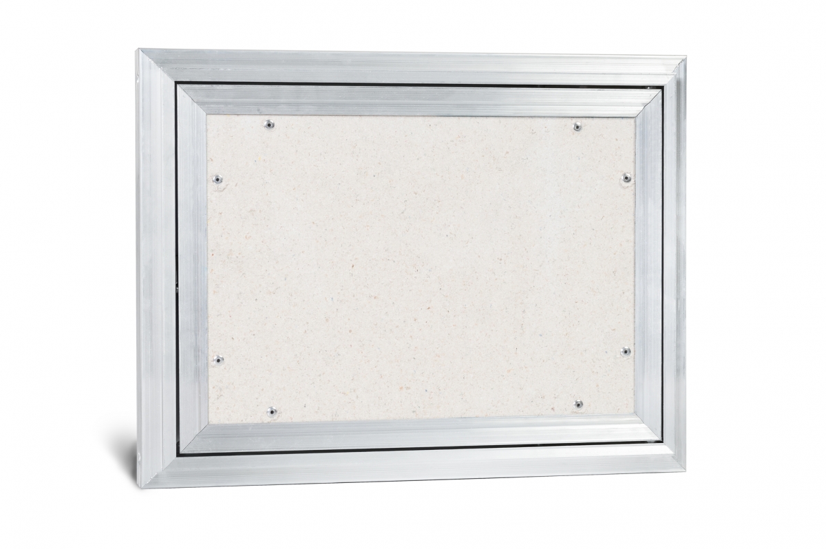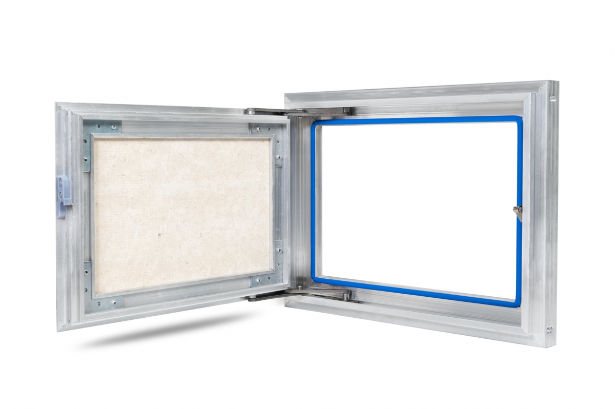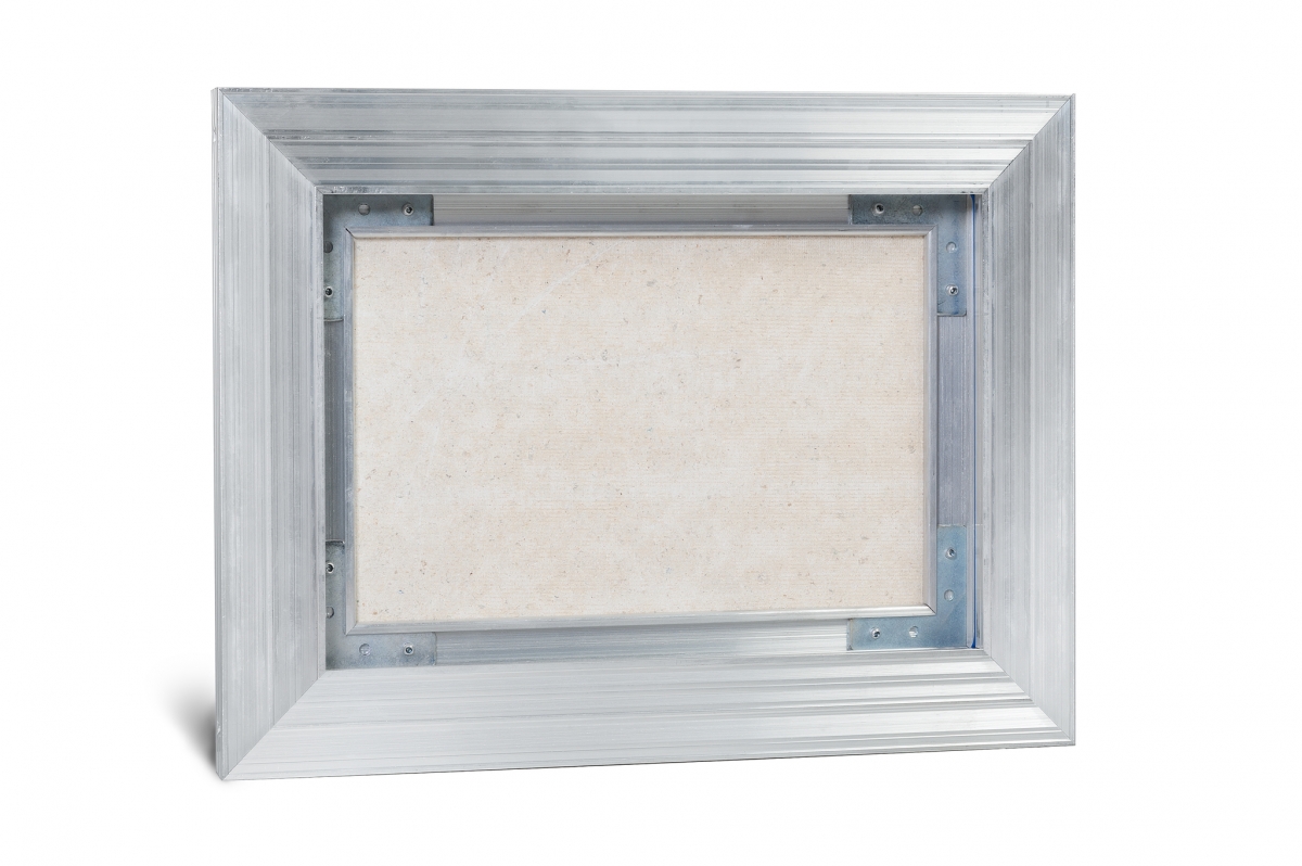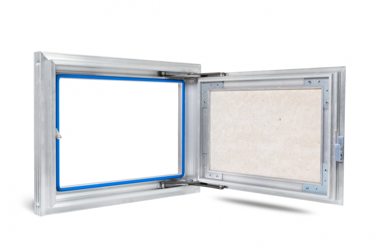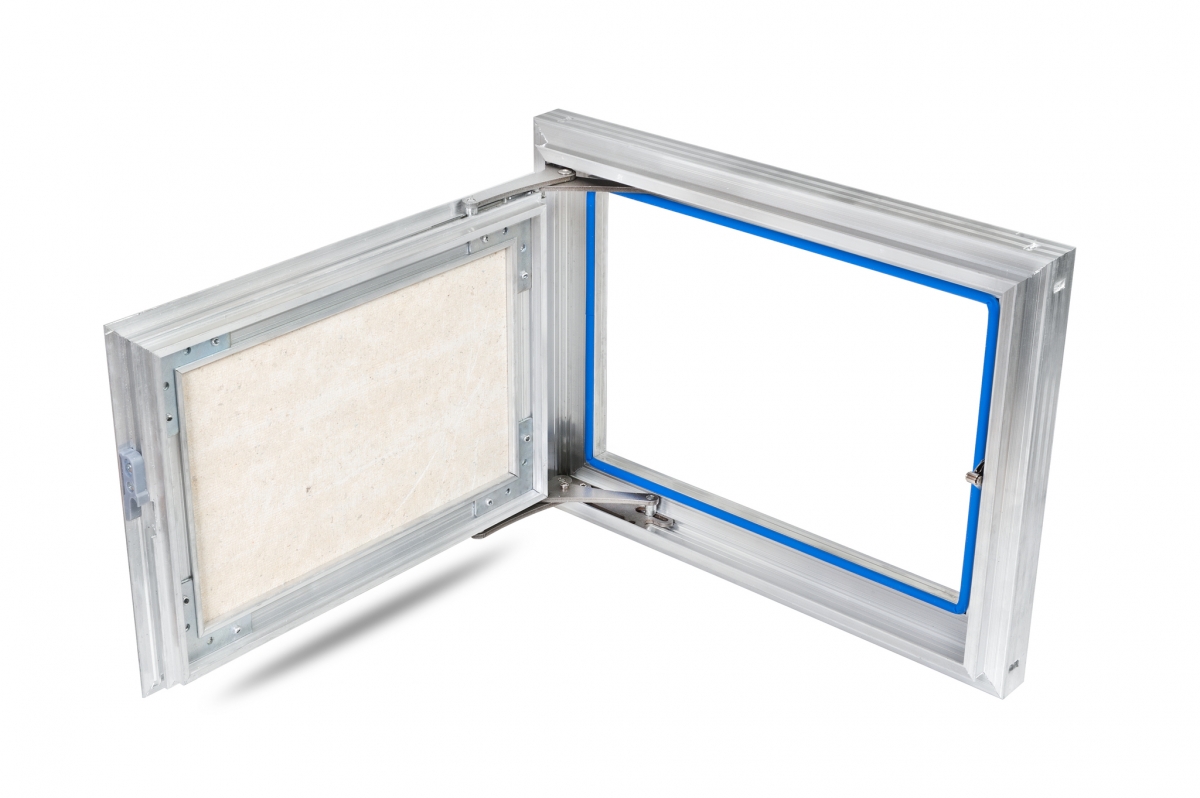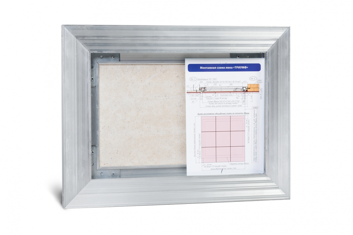 Рама люка для ревизии «Триумф» выполнена из алюминиевого профиля коробчатой формы и Г-образной в сечении для максимальной жесткости и удобства монтажа. Дверца люка изготавливается и алюминиевого профиля Т-образной формы, переменного сечения, с выраженными ребрами жесткости, что делает её конструкцию более жесткой в отличие от своих предшественников. Так как немаловажно исключить перекосы конструкции дверцы, чтобы не допустить деформации наклеенных на нее материалов. В отличие от наших конкурентов, толщина стенок алюминиевого профиля у нас по-прежнему 2 мм и более.