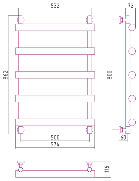 Полотенцесушитель водяной Сунержа Атлант 800x500